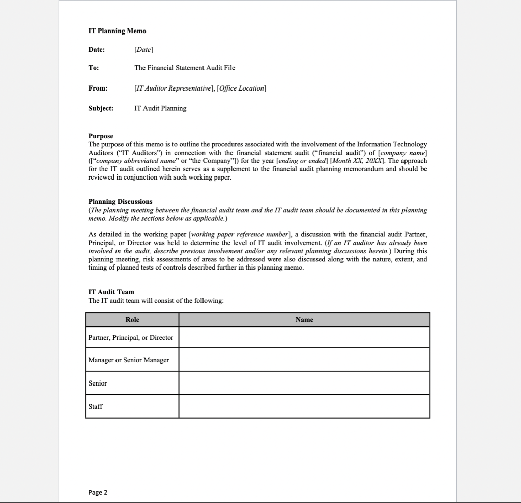 Use the following information to prepare an IT